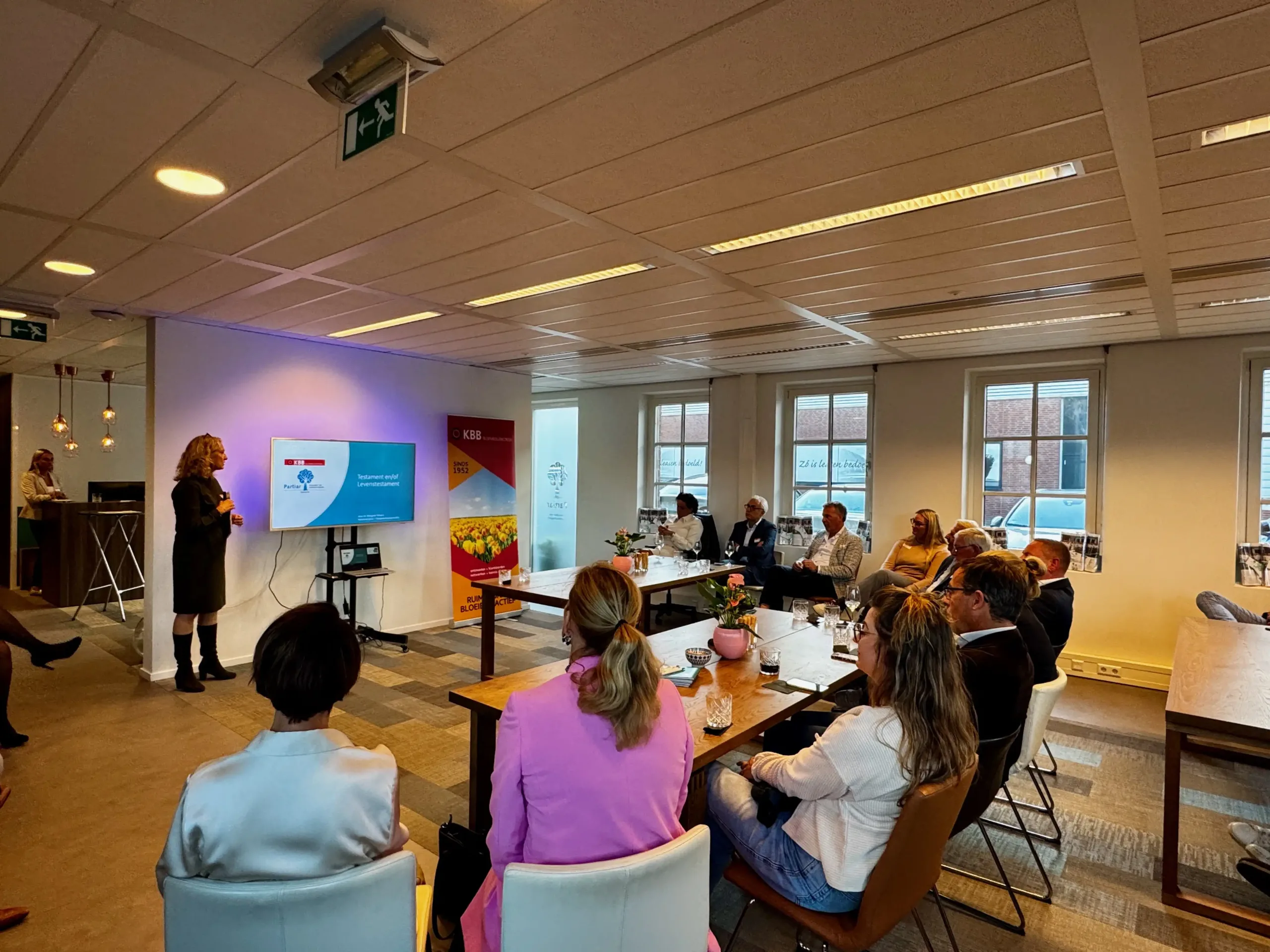 Na een warm welkom door Annemieke Wagenaar en Marieke de Geus genoten de gasten van een lichte, gastvrije omgeving en een verzorgde catering. Centraal in het programma stond de presentatie van mr. Margriet Westra over executeurschap en de afwikkeling van nalatenschappen. Op een heldere en toegankelijke manier wist zij een onderwerp dat vaak als ingewikkeld en gevoelig wordt ervaren, begrijpelijk te maken.